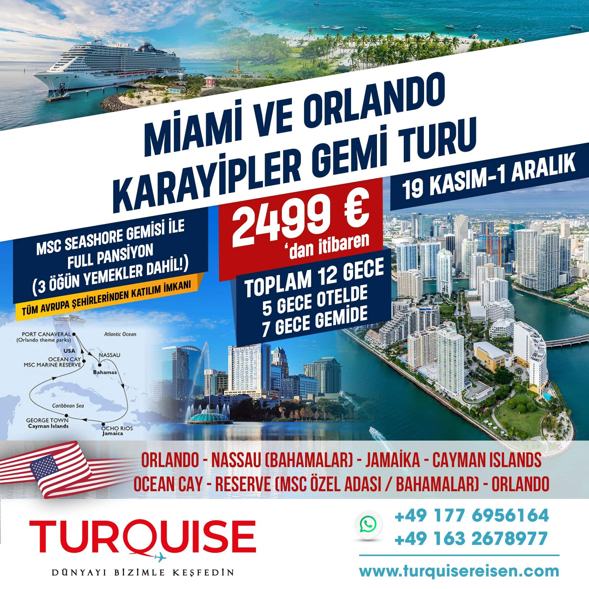 Miami – Nassau (Bahamalar) – Cozumel – Costa Maya (Meksika) – Ocean Cay MSC Marine Reserve (MSC özel adası / Bahamalar) – Orlando