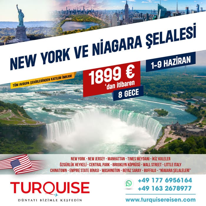 NEW YORK – NEW JERSEY – MANHATTAN – TIMES MEYDANI – İKİZ KULELER – ÖZGÜRLÜK HEYKELİ – CENTRAL PARK – BROOKLYN KÖPRÜSÜ – WALL STREET – LITTLE ITALY – CHINATOWN – EMPIRE STATE BİNASI – WASHINGTON – BEYAZ SARAY – BUFFALO – “NİAGARA ŞELALELERİ”