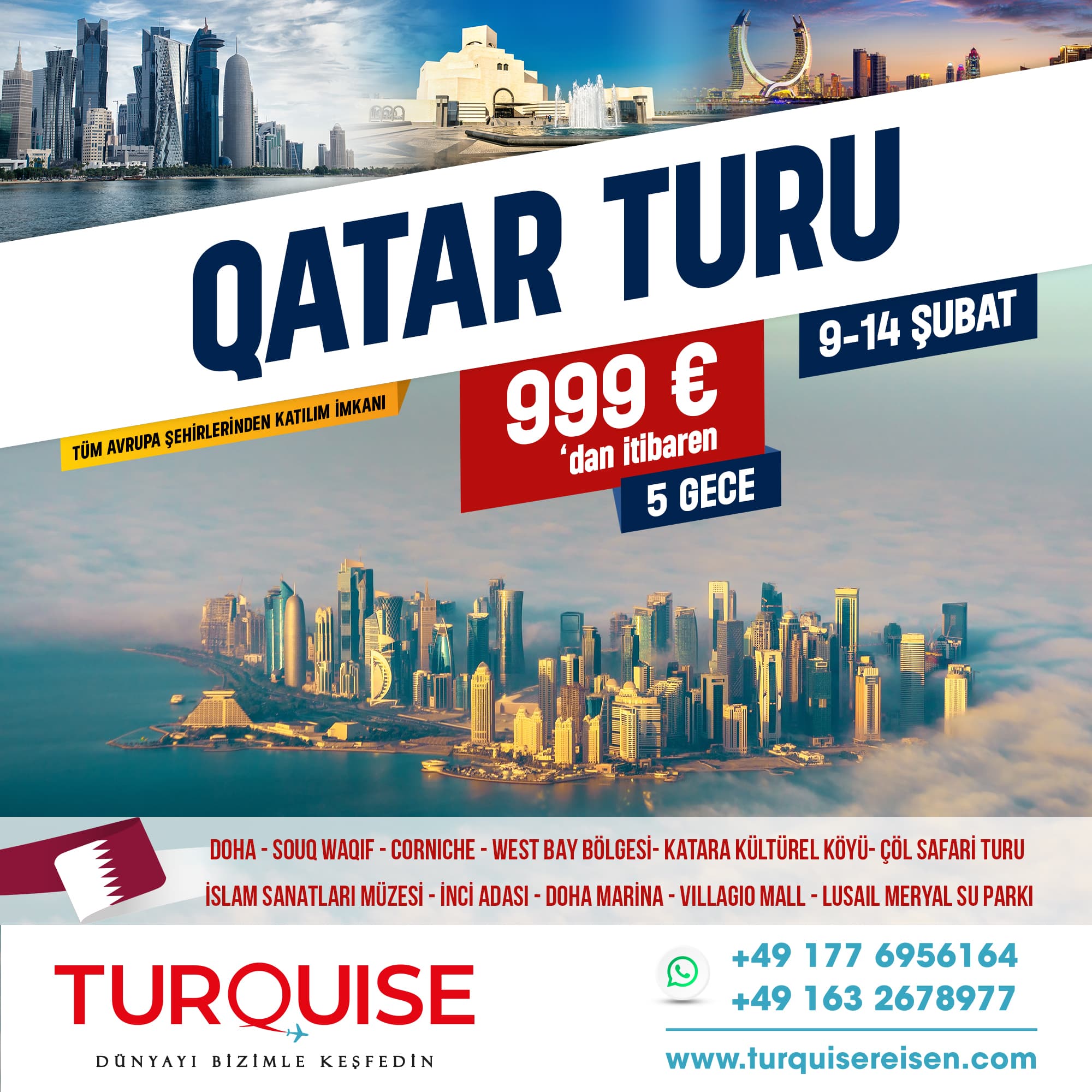 Doha – Souq Waqif – Corniche – West Bay Bölgesi – Katara Kültürel Köyü – Çöl Safari Turu – İslam Sanatları Müzesi – İnci Adası – Doha Marina – Villagio Mall – Lusail Meryal Su Parkı